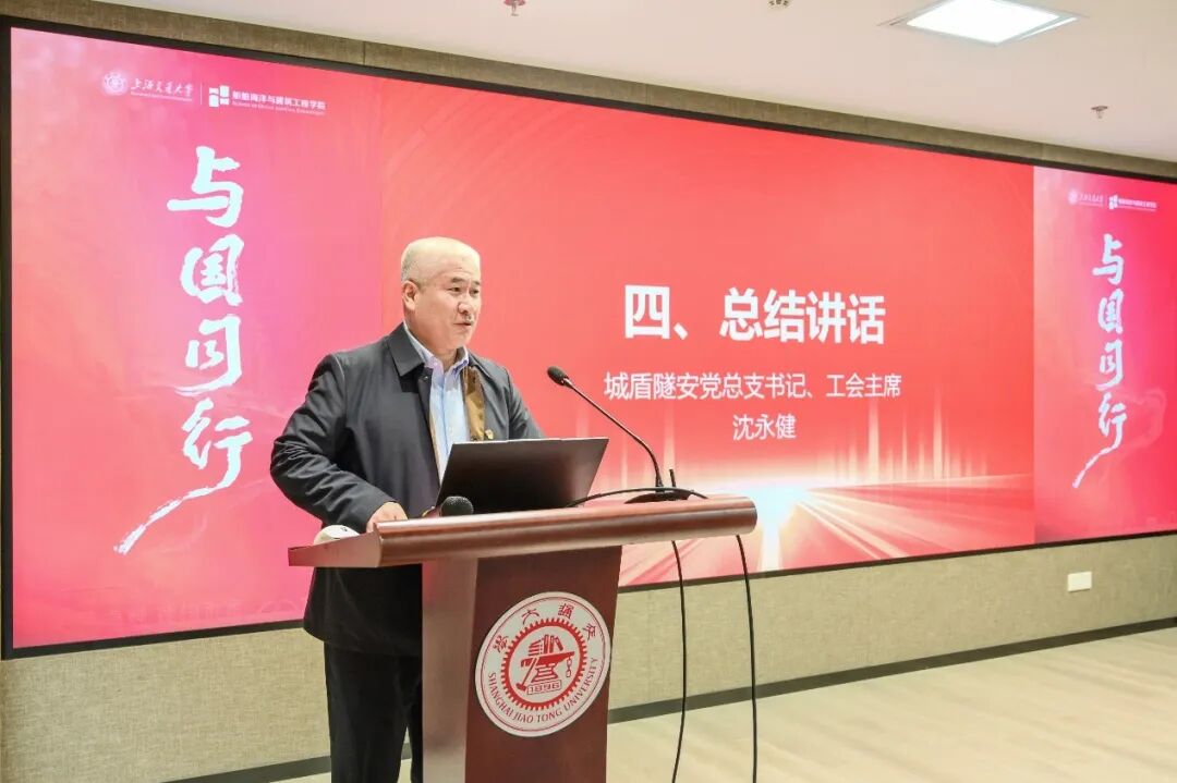 活动最后,城盾隧安党总支书记、工会主席沈永健作总结讲话。他充分肯定了本次校企共建活动的积极成效,并高度评价了交大科研团队在城市地下空间运维、城市安全韧性等领域取得的一系列突破性成果。沈永健指出,此次活动不仅搭建了党建交流的新平台,也为双方在科研攻关、技术研发和人才培养方面打开了更广阔的合作空间。他勉励交大学子继续发扬专业报国精神,在国家重大工程和“十五五”建设进程中贡献智慧力量,在世界舞台上展现中国方案、中国智慧。